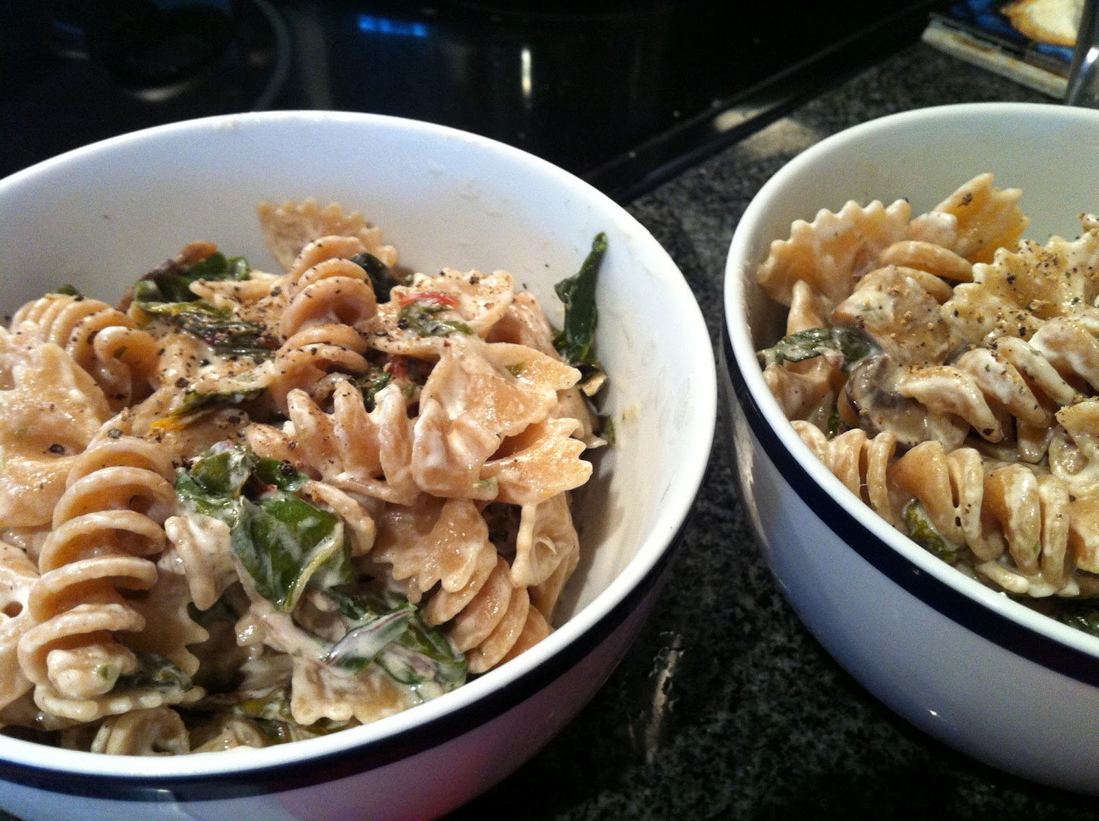Last but not least, another of my "throw together" masterpieces...Creamy Swiss Chard & Mushroom Pasta.